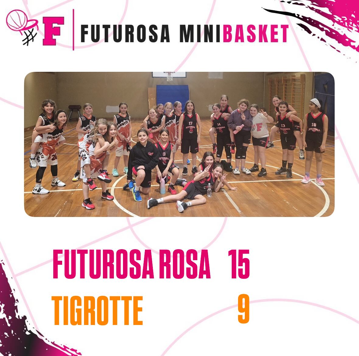 TORNEO EVVIVA IL MINIBASKET LE #F ROSA RITORNANO IN CAMPO E GIOISCONO PER UN’OTTIMA PARTITA Futurosa Rosa – Tigrotte: 15-9 Dopo la pausa per il