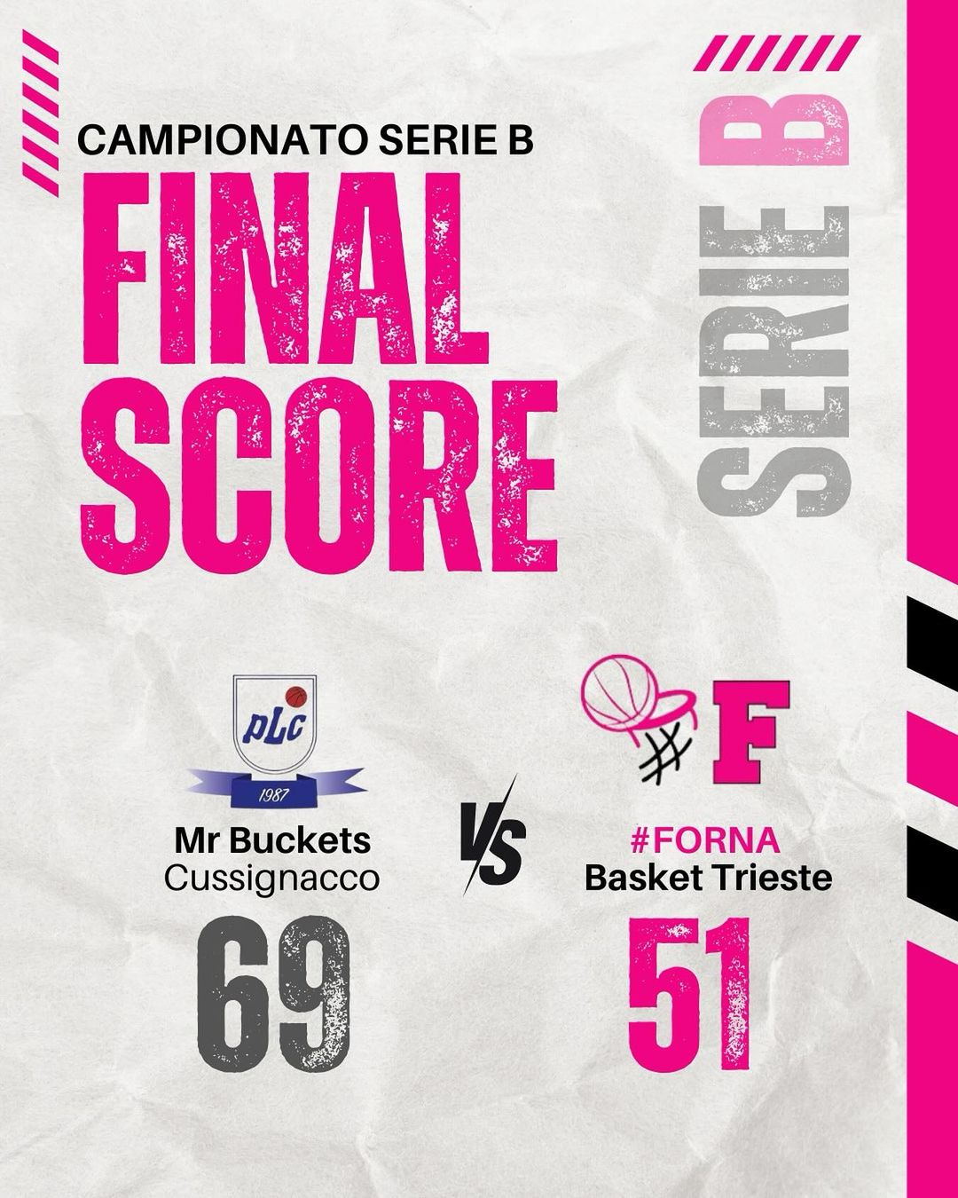 NON SORRIDONO LE #F Mr Buckets Cussignacco – #Forna Futurosa Basket Trieste 69 – 51 (11-9, 33-24, 53-30) Un buon inizio per le #F contro